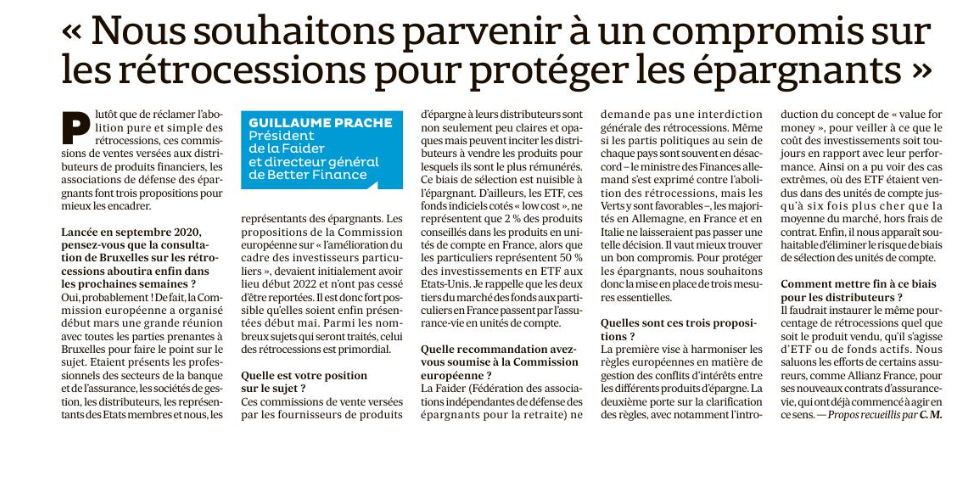 " Nous souhaitons parvenir à un compromis sur les rétrocessions pour protéger les épargnants "